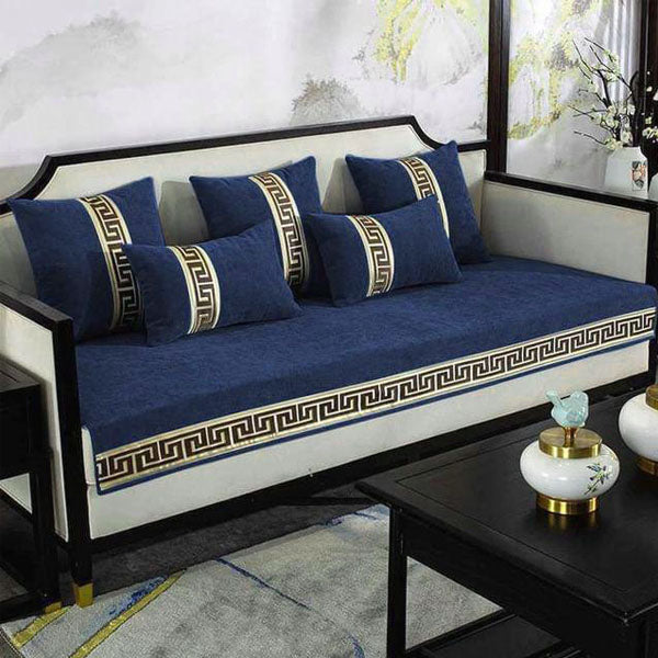 Versace Velvet Sofa Covers with Cushion Covers - Blue